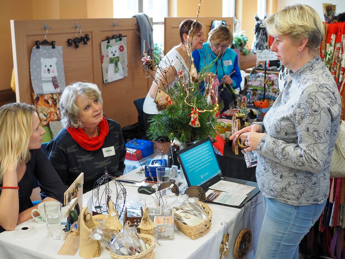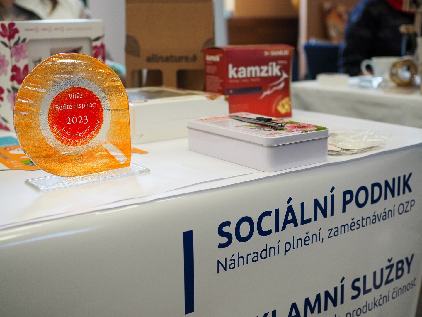 Na své si přišli i ti, kdo již začali s nákupy vánočních dárků. jako každý rok, čekala v předsálí pestrá prezentace stánků sociálních podniků. Zde si mohli návštěvníci zakoupit výrobky jako jsou keramika, šité výrobky, mýdla, tašky, bižuterie, pivo, sušené ovoce mrazem, chutney, sirupy a spoustu dalších krásných dárků.