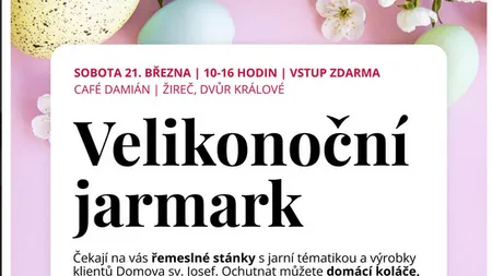 „Ať už přijdete pěšky 🚶♀️, přijedete na kole 🚲 po cyklostezce či autem 🚗, čeká vás jarní atmosféra, drobnosti od srdce a možnost podpořit dobrou věc 💛.“
