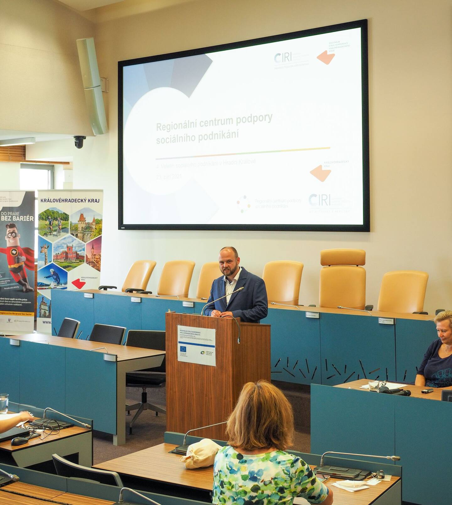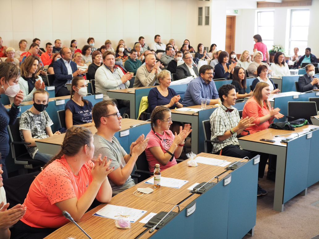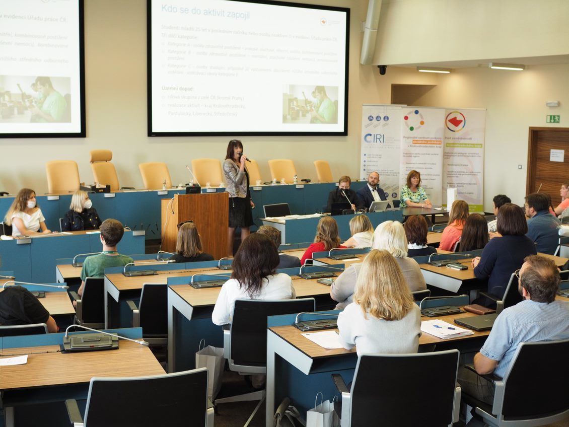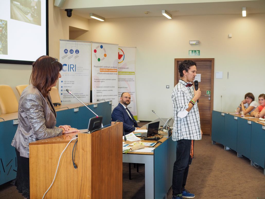 Odpolední část patřila Závěrečné konferenci úspěšného projektu Do praxe bez bariér, která začala po přestávce a výborném občerstvení od Bistra u dvou přátel a dortících od Pferdy – Pekárna Na Plechu. Tento projekt nám jednak nastínila Jana Hanušová z CIRI, ale i puštěné video z pracovních tréninků a praxí s absolventy projektu. Ti na závěr získali od radního Královehradeckého kraje pro regionální rozvoj Adama Valenty certifikát o úspěšném absolvování.